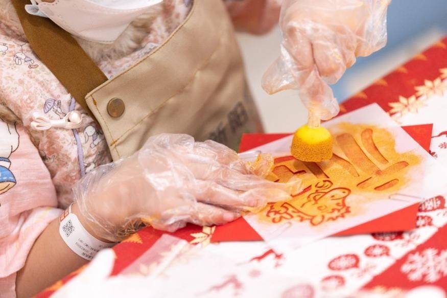 1月27日,在“病房学校”里的迎新年活动上,孩子正在体验传统年画拓印。湖州市新闻传媒中心记者伊凡摄