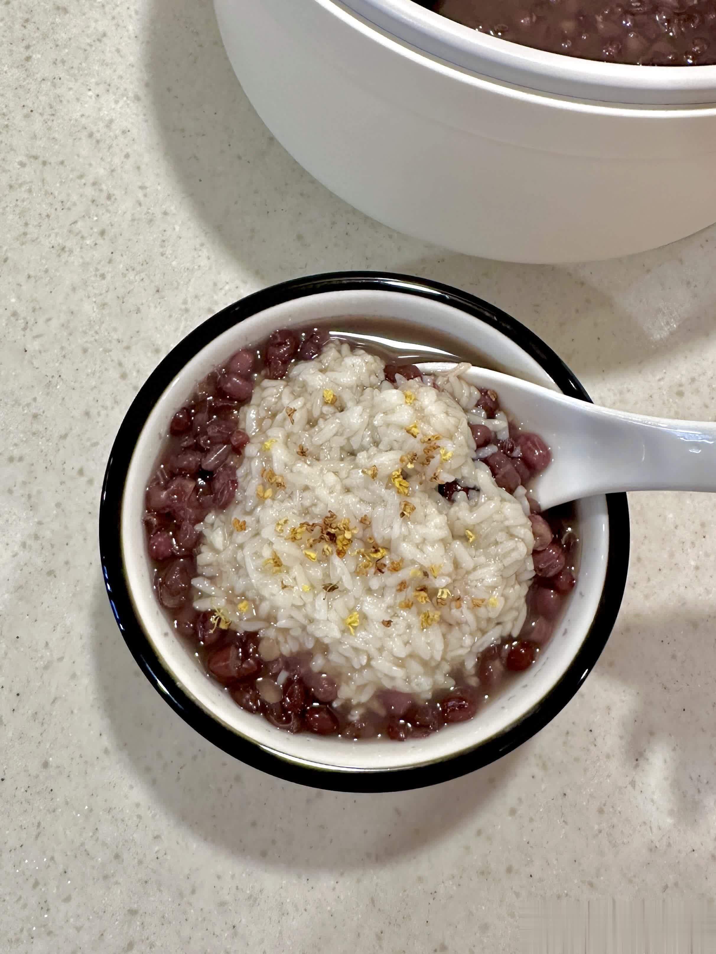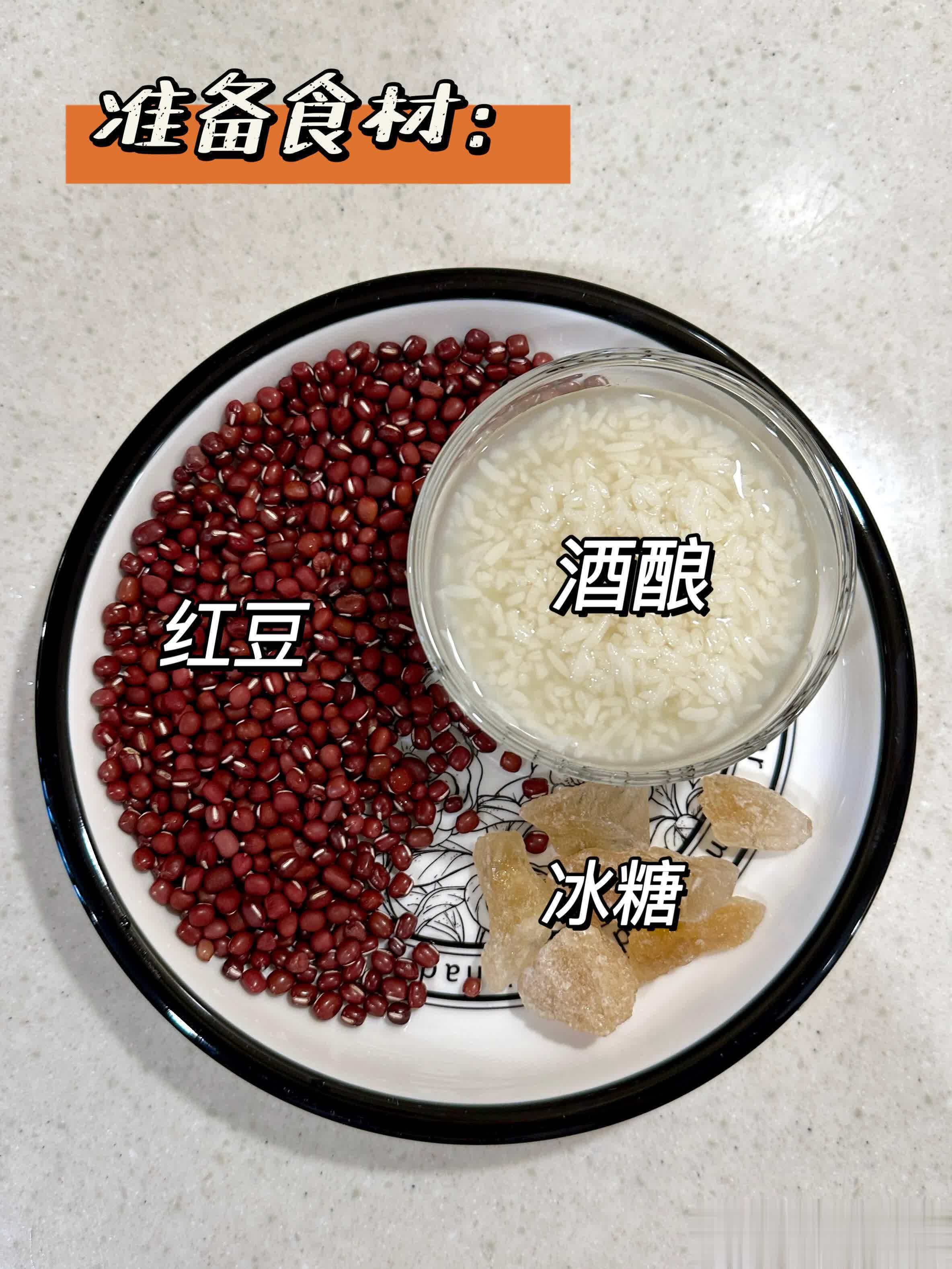 食材准备:红豆50g、圆糯米100g、甜酒曲2g、清水适量、冰糖少许