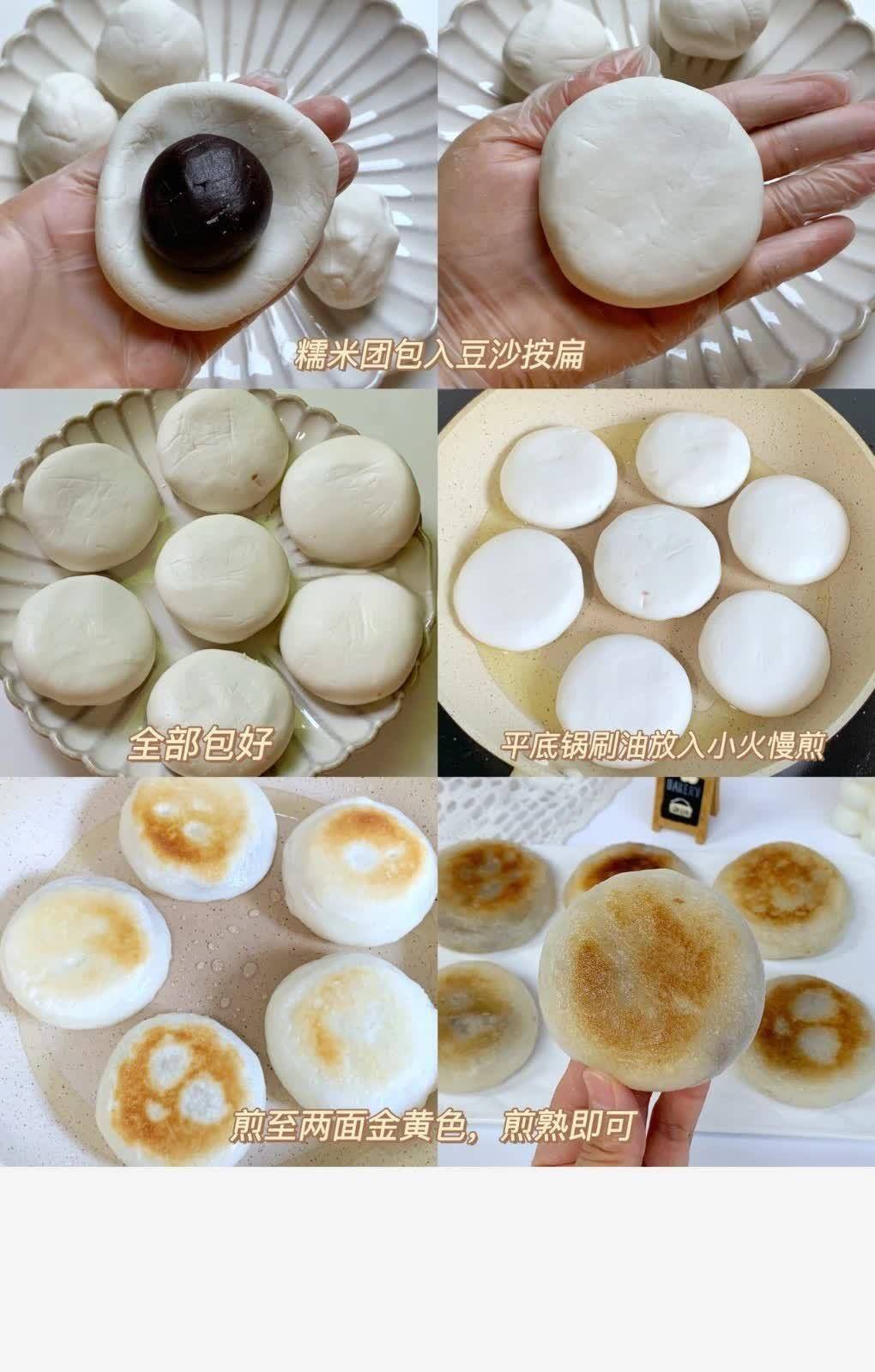 小贴士:面团的软硬要适中,水加太多容易粘手,加太少则不容易包馅;煎的时候一定要用小火,避免外焦里生。