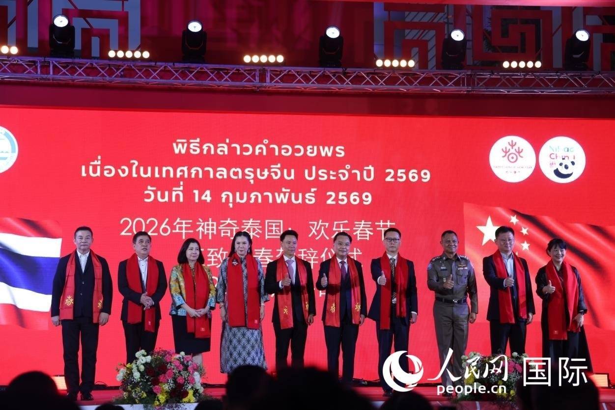 人民网曼谷2月15日电(记者张矜若)2月14日,2026“欢乐春节”中泰互致新春贺辞活动在泰国曼谷暹罗百丽宫举行。中国驻泰国大使张建卫、泰国旅游与体育部长阿塔功、泰国国家旅游局局长塔帕妮等出席。