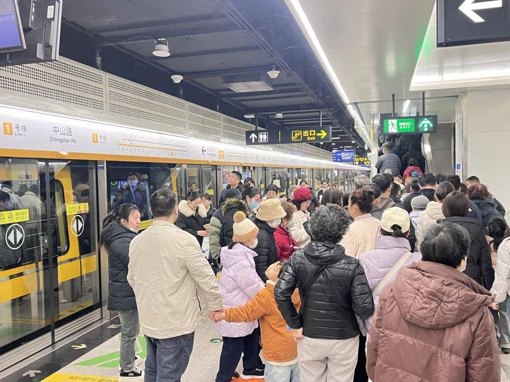 r842.33万人次——2月15日至23日,青岛地铁线网累计客运量达842.33万人次,单日最高客运量达131.87万人次,均刷新了历年最高纪录。